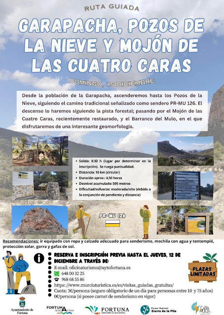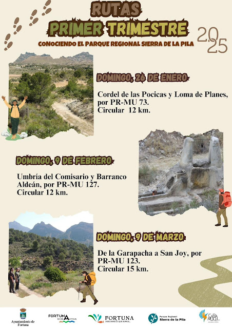 Nueva edición de rutas por la Sierra de la Pila, programadas con el Ayuntamiento de Fortuna durante el primer trimestre de 2025