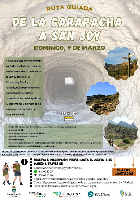 Continuamos con nuestras actividades para dar a conocer el Parque Regional Sierra de la Pila, esta vez realizamos la última ruta del primer trimestre del año en Fortuna, el próximo domingo 9 de marzo. A través de este itinerario vamos a unir dos poblaciones rurales la vertiente meridional de la Sierra de la Pila, como […]