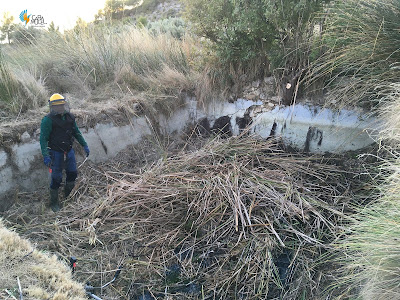 Dentro de las tareas de mantenimiento y restauración de puntos de agua de carácter tradicional, se ha realizado un desbroce en el Abrevadero de Las Pocicas y la restauración del antiguo dique de la Poza de la Tía Catalina, con la finalidad de aumentar la capacidad de retención de agua aprovechando las crecidas puntuales que se puedan producir en el barranco.