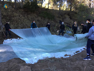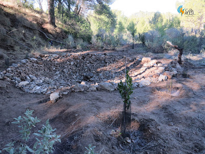 Alrededor de la charca se ha realizado una plantación de especies de arbustos autóctonos, como madroños, aladiernos y espinos negros, con la idea de proporcionar alimento para la fauna, crear espacios de refugio para los anfibios, hábitat para insectos, generar espacios de sombra y dar diversidad a la zona, ya que se ubica en un terreno abancalado dedicado antiguamente para cultivos de secano. A continuación mostramos las imágenes de la construcción de la charca paso a paso.