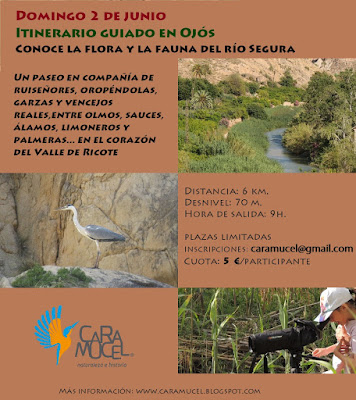 Actividad guiada en la que se realizará un recorrido a pie por las riberas del río Segura en tornoal pueblo de Ojós, alcanzando parajes como el Salto de la Novia y el Solvente, en