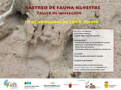 Taller de iniciación al rastreo de fauna silvestre 10 de noviembre de 2018, Ricote Actividad enmarcada dentro del Voluntariado de seguimiento de fauna en Sierra de Ricote y La Navela Abierto el plazo de inscripción (PLAZAS LIMITADAS)