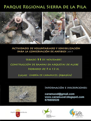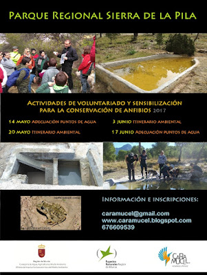 Durante los meses de mayo y junio de 2017, vamos a realizar varias actividades de voluntariado y educación ambiental dirigidas a la conservación de anfibios en el Parque Regional Sierra de la Pila, en colaboración con la Oficina de Impulso Socioeconómico del Medio Ambiente de la Comunidad Autónoma de la región de Murcia. Se llevarán […]
