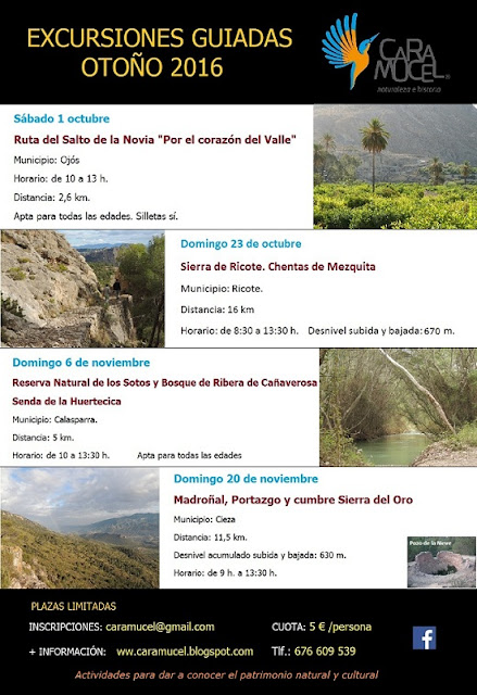 El otoño viene cargado de actividades de CARAMUCEL, con nuestras excursiones guiadas programadas los meses de octubre y noviembre, el curso de rapaces nocturnas y la Marcha Ganadera Vías Pecuarias de Abarán en diciembre, y otras actividades en La Sierra de Pila que anunciaremos próximamente. Ya puedes ir haciendo previsiones en tu agenda, y recuerda […]