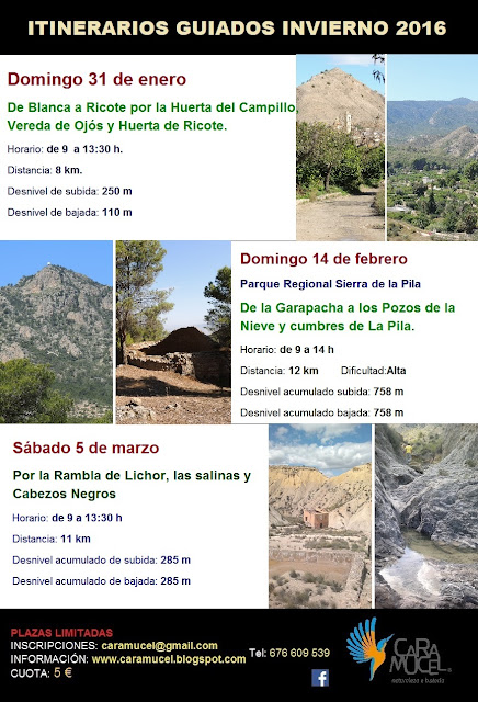 Tipo de actividad: Salida guiada a pie. Distancia total: 12 km. Recorrido circular. Desnivel acumulado de subida y de bajada: 390 m. Dificultad: media. Se transitará por rambla, senda y camino forestal. Horario: de 18 h. a 22 h. Excursión a pie por el Cordel de Charrara y Rambla de Benito, pasando por la Umbría […]