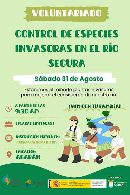 La asociación Caramucel ha convocado para el próximo sábado día 31 una actividad de control de especies exóticas invasoras, dentro del programa “Mejora participativa del entorno fluvial del río Segura en Abarán”, que ha sido seleccionado para su financiación dentro de las actuaciones de Voluntariado en Cauces convocadas por Tragsa y la Confederación Hidrográfica […]