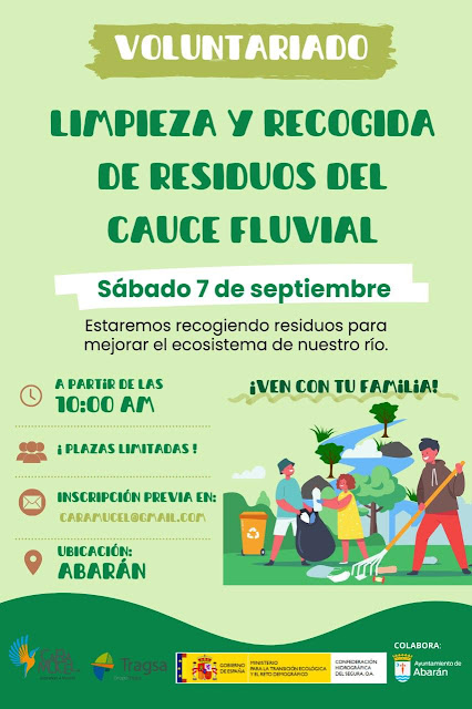 La asociación Caramucel ha convocado para el próximo sábado día 7 de septiembre una actividad de limpieza de residuos, dentro del programa “Mejora participativa del entorno fluvial del río Segura en Abarán”, que ha sido seleccionado para su financiación dentro de las actuaciones de Voluntariado en Cauces convocadas por Tragsa y la Confederación Hidrográfica del […]
