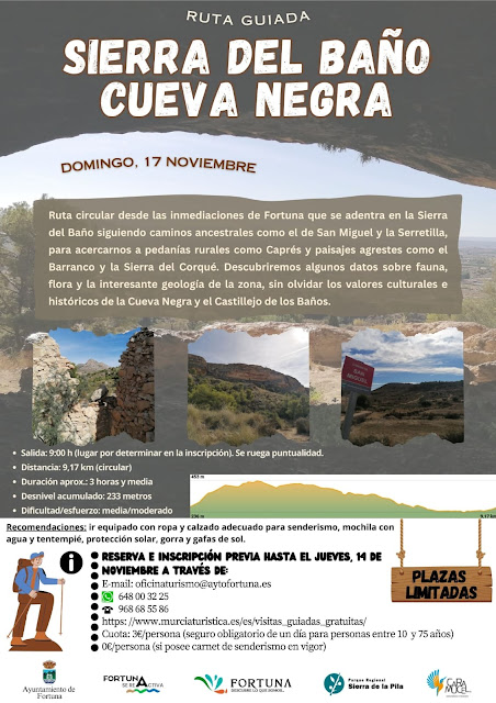 Sierra del Baño y Cueva Negra (Fortuna), nueva ruta guiada para el 17 de noviembre
