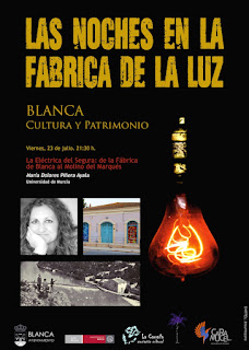 Este viernes 23 de julio ha continuado el ciclo Las Noches en la Fábrica de la Luz, con la conferencia de María Dolores Piñera Ayala. La doctora habló de la Sociedad Eléctrica del Segura y dos de sus fábricas de luz: la fábrica de Blanca, inaugurada en 1893, y la del Molino del Marqués, ubicada […]