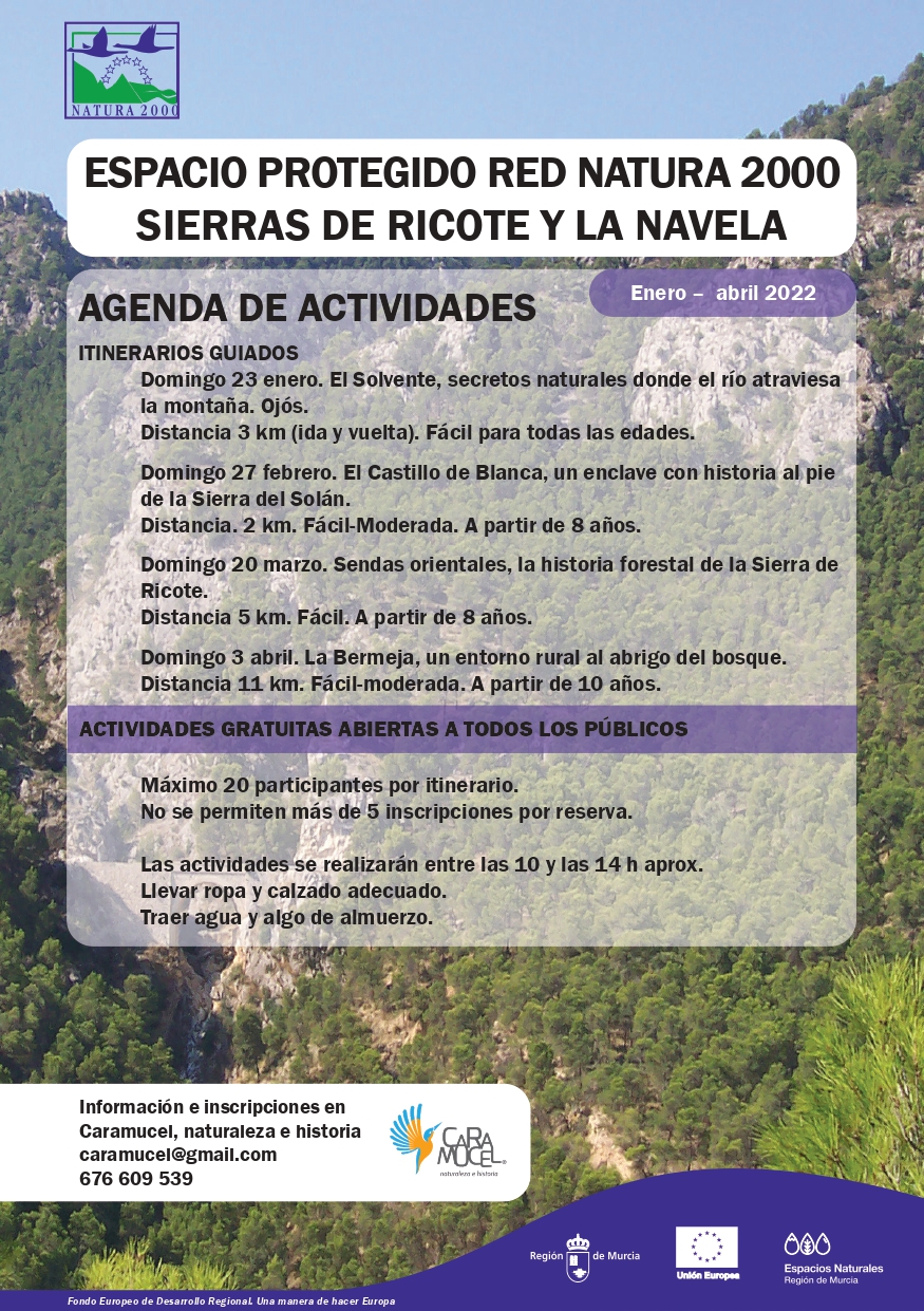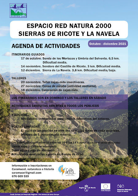 Agenda de actividades para octubre – diciembre en el Espacio Red Natura 2000 de las Sierras de Ricote y La Navela